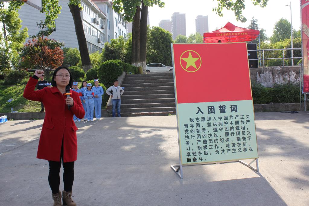 重温誓词活动在庄严的国歌声中隆重拉开帷幕,全体师生起立唱响国歌;付玉梅老师上台带领全体同学重温入团誓词,接着全体同学齐唱共青团歌.