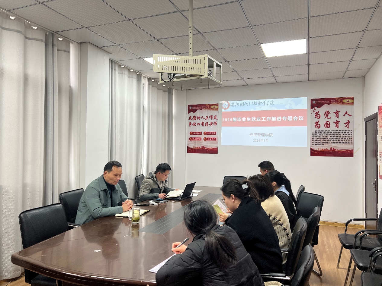 为贯彻落实2024届全省普通高校毕业生就业工作培训暨调度视频会议精神,进一步做好毕业生服务工作,促进毕业生就业工作走深走实,经贸管理学院于3月13日在知行楼204会议室召开2024届毕业生就业工作专题推进会。会议由学院党总支书记刘峰主持,各毕业班辅导员、就业辅导员参会。