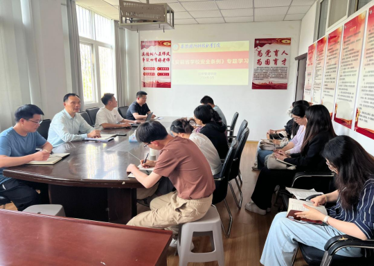 本网讯(经贸管理学院 王超)根据学校安全工作部署,为强化提升辅导员专业素养,5月8日下午,经贸管理学院开展《安徽省学校安全条例》专题学习,会议由学院党总支书记刘峰主持,学院全体辅导员参会。