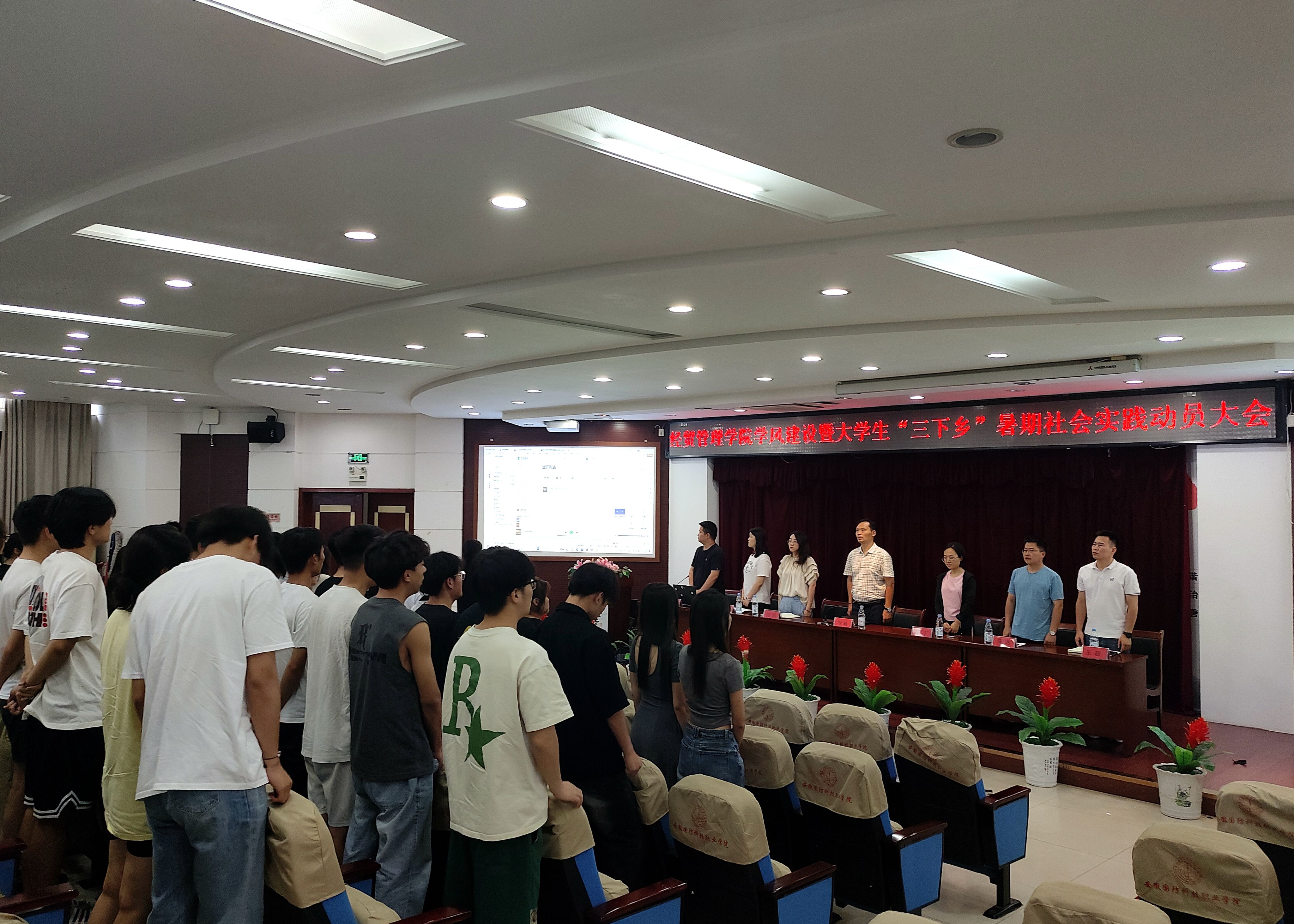 刘峰指出,加强学风建设是提高人才培养质量的迫切需要,是促进学生全面发展的必然要求,全体学生要深刻领会深入加强学风建设的重要意义。他要求,学风建设要全员参与,要自觉树立“我是经贸人,营造优良学风从我做起”的意识,以主人翁的姿态积极参与学风建设各项活动,严格遵守学校各项规章制度,严肃考风考纪,共同努力营造良好的育人环境,不断开创经管学院学风建设新局面。他强调,暑期社会实践是提高大学生综合素质与能力的重要载体,是高校培养人才的有效途径。同学们要在做好自身安全工作的基础上胸怀理想、志存高远,敢于实践、勇于担当,开拓进取、锐意创新,要让做到“下马观花”而不是“走马观花”,始终继承和发扬学校“四特”军工精神,在社会实践中锻炼本领,增强责任意识,让青春绽放绚丽之花。