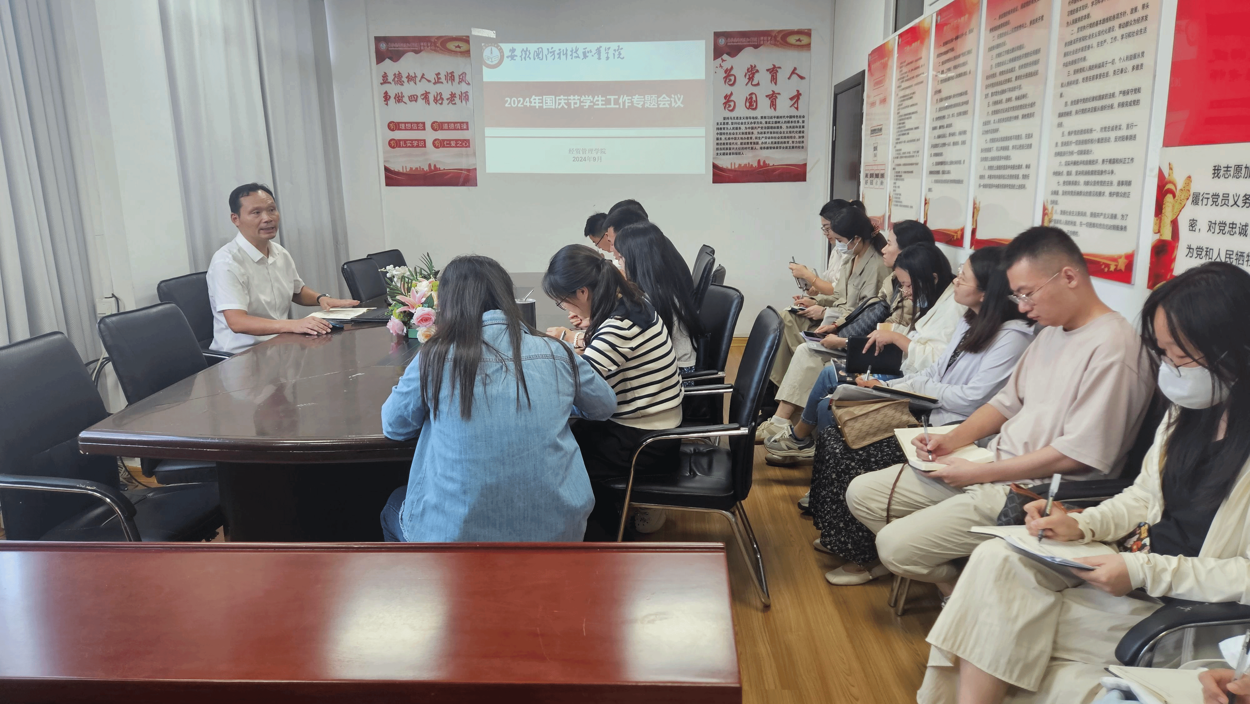 国庆假期将至,为认真落实学校关于2024年国庆节学生工作部署,切实做好国庆期间学生安全稳定工作,学院高度重视,精心部署,确保师生度过一个安全、文明的假期。