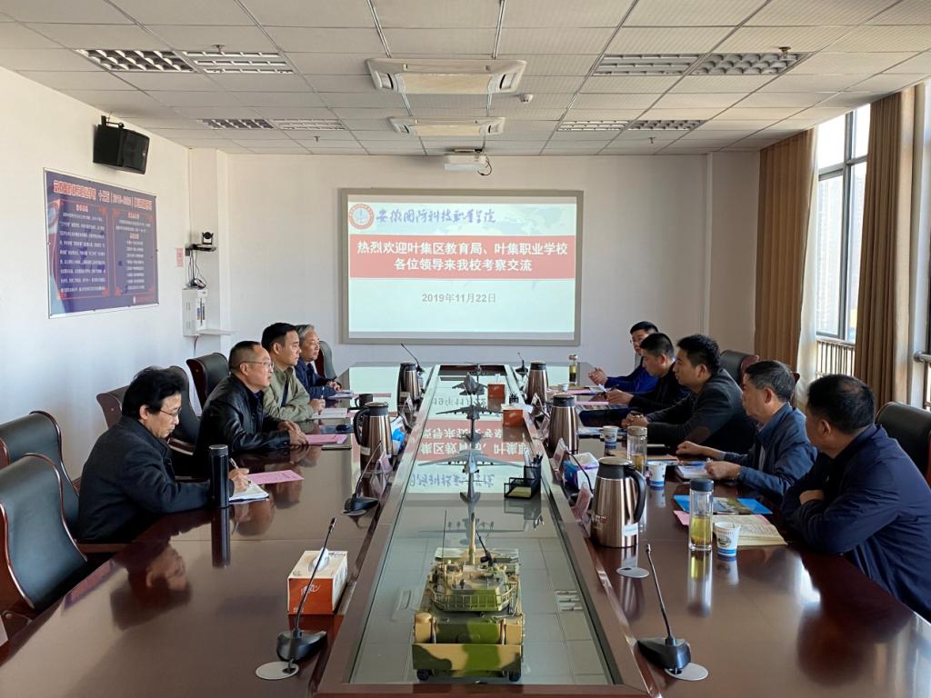 本网讯(党政办 陶常乐)11月22日下午,叶集区教育局副局长张庆、叶集职业学校负责人黄保明等一行五人来beat365考察交流,学校党委委员、副校长冯伦久,党委委员、信息技术学院院长黄存东,招就办主任束传俊,军民融合办主任梁继会等热情接待了来宾,并在秉心楼11楼第一会议室举行了座谈会。