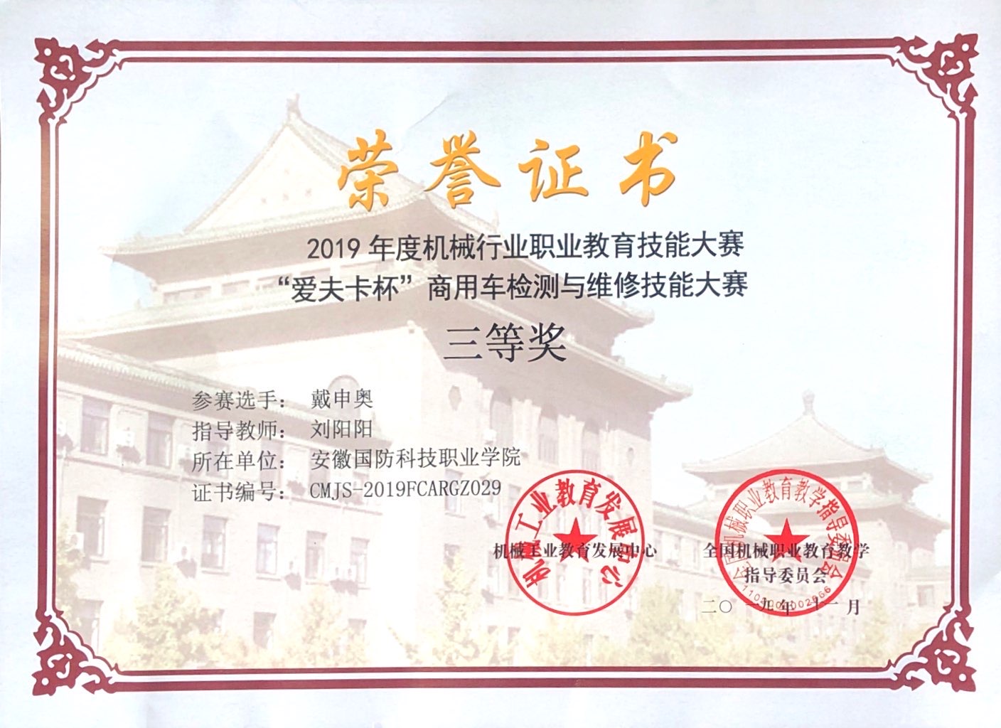 近日,主办方颁发了获奖证书。beat365汽车技术学院刘阳阳、陈梦雅老师指导的戴申奥、宋国庆两名学生历经数月的强化训练、潜心攻关,在比赛中沉着应战,从众多参赛选手中脱颖而出,分获三等奖,充分展示了beat365师生积极向上、奋发进取的精神风貌。