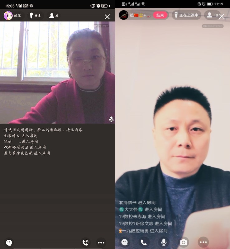 信息技术学院班主任马士君老师(左)、城市建设学院班主任张凤老师(右)组织开展网络视频班会
