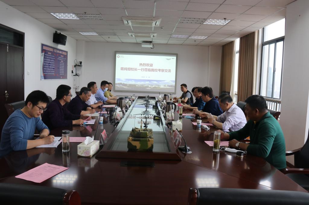 本网讯(军民融合发展中心 聂世俊)4月30日下午,六安市工业学校校长蒋纯坦、副校长王宜林、校教务处主任黄英来、校实验中心主任姚翼、校合作企业负责人王化发、王善平一行来beat365交流,深入洽谈合作。我校党委委员、信息技术学院院长黄存东,校军民融合发展中心主任梁继会、电气技术学院副院长侯国栋、信息技术学院副院长沙有闯、信息技术学院党总支副书记杨庆颖与来宾进行了深入交流洽谈。
