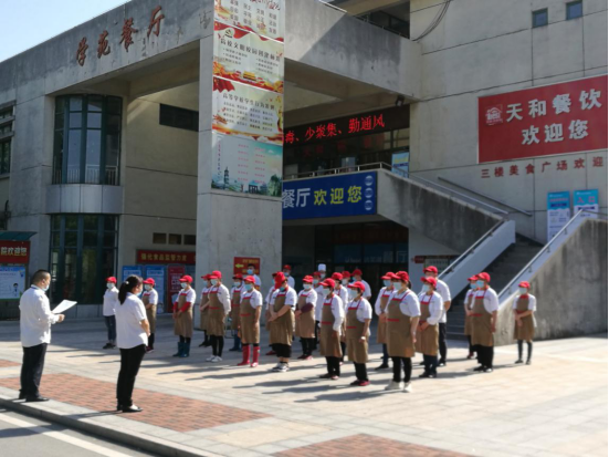 食堂叔叔阿姨们正在开早会提要求