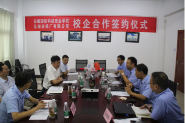 本网讯(电气技术学院 侯国栋)8月14日上午,校党委书记余嗣元、电气技术学院院长李翔一行到芜湖造船厂有限公司参观考察并签订了校企合作协议。