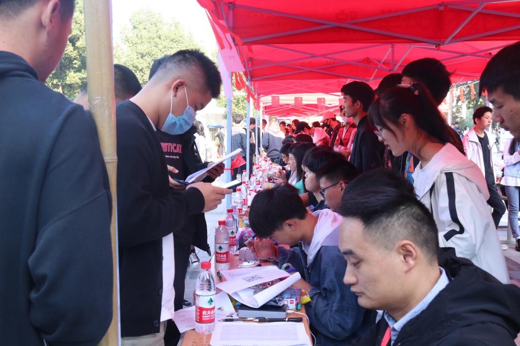 校园内随处可见的亮丽风景线——“红马甲”志愿者,为新生和家长答疑解惑、提供服务