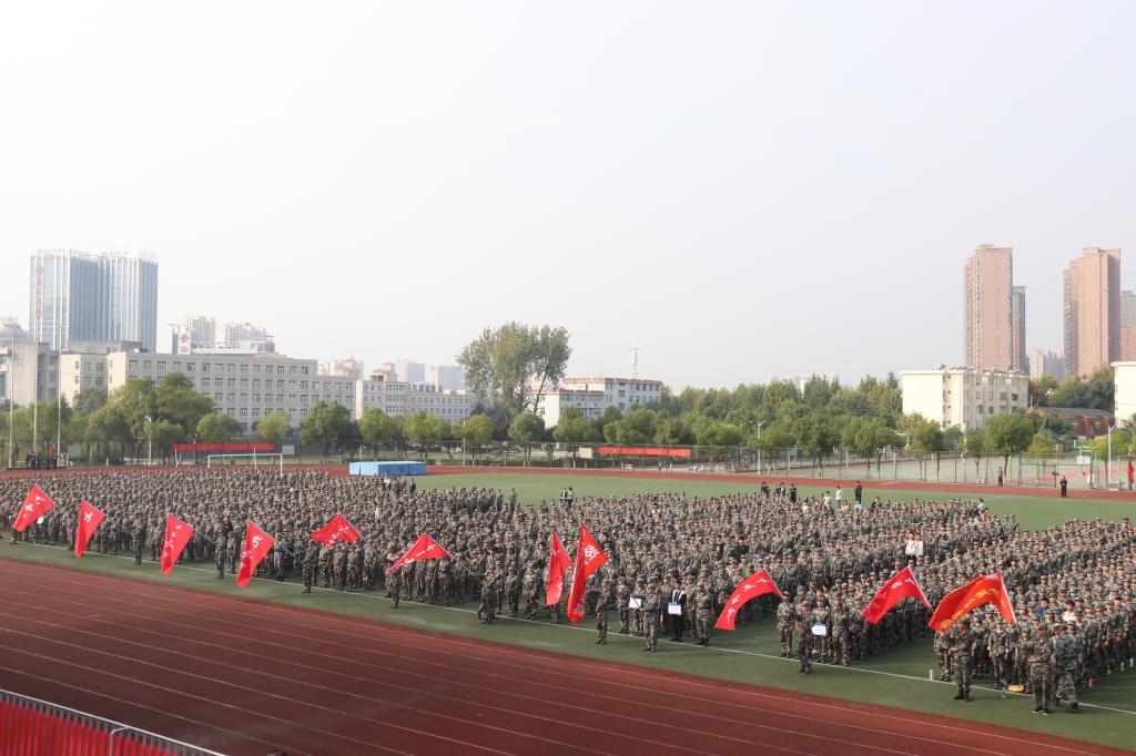 本网讯 10月14日上午,beat365唯一官方网站2020级新生开学典礼暨军训动员大会在校田径运动场隆重举行。校领导余嗣元、李麟书、朱德明、冯伦久、丁守宝出席典礼,各职能部门和二级学院主要负责人参加大会。大会由副校长丁守宝主持。
