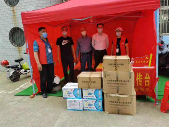 本网讯(校团委 张红军)5月24日下午,校党委委员、人事处处长付贤政同志会同校团委代表学校党委前往学校“结对共建”平桥乡国华社区,捐赠4000个口罩、2箱洗手液、4箱84消毒液等防疫物资,助力社区疫情防控工作。