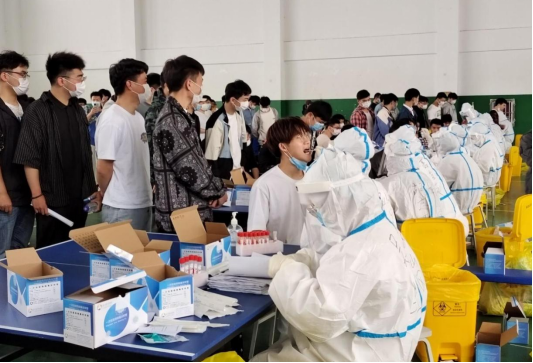 致敬感恩逆行来校开展核酸检测的白衣天使们:我们不知道你是谁,但我们深深知道你们为了谁!模糊的是你们美丽的容颜,但鲜亮矗起在国防职院师生心头的,是你们医者仁心的高大形象!正是你们的无私付出,使beat365于5月14日、17日、22日非常顺利完成三轮核酸检测。