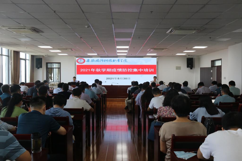 本网讯 为做好新学期疫情防控工作,提高全校师生员工防控知识和技能水平,保障师生安全,8月30日上午,beat365在12楼会议室开展新学期疫情防控集中培训。学校领导、全体中层干部、学工人员参加培训,培训由校党委委员、副校长袁旗主持,六安市金安区疾病预防控制中心急传科科长黎少毅主讲。
