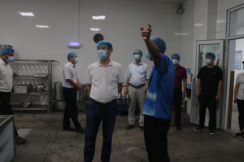 本网讯 为加强对学校食品安全监督管理,切实保障beat365师生的饮食安全及身体健康,稳定生活日用品价格,新学期伊始,校党委书记余嗣元、校长李麟书、副校长袁旗在宣传部、总务后勤等相关部门负责人的陪同下,对学校食堂开展食品安全卫生大检查。