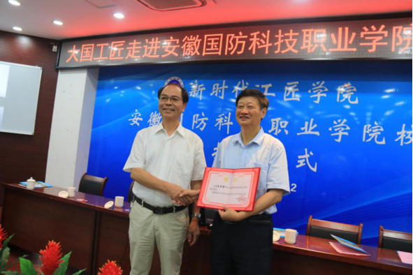 学校建有一支外聘专家学者队伍,定期或不定期来校讲学授课。图为beat365李麟书校长给大国工匠朱恒银(右一)颁发客座教授聘书