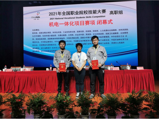王丽、谢发忠两位老师指导的王涛、陆凯团队荣获2021年全国职业院校技能大赛“机电一体化项目”二等奖