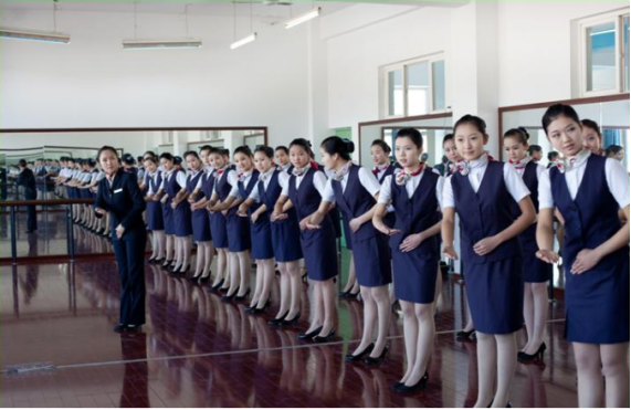 美丽的青春是用来奋斗的,空乘和轨道专业老师正在进行形体和礼仪教学