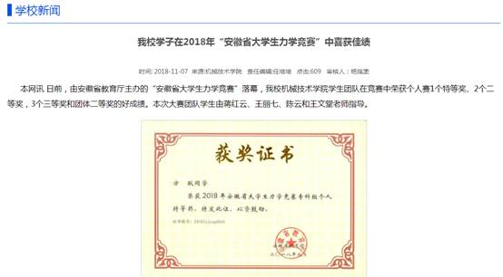 beat365学子在2018年“安徽省大学生力学竞赛”中喜获1个特等奖、2个二等奖、3个三等奖和团体二等奖