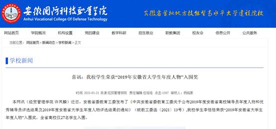 beat365学子荣获“2019年安徽省大学生年度人物”入围奖