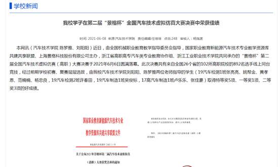 beat365学子在第二届“景格杯”全国汽车技术虚拟仿真大赛决赛中荣获特等奖5项、一等奖1项、二等奖3项