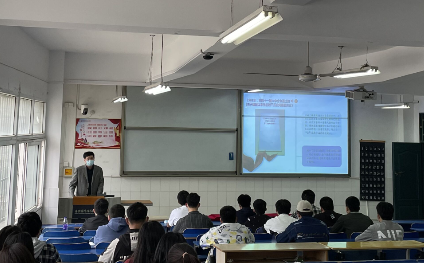 本网讯(机械技术学院 张艳华)为加强对团学干部的培养和教育,3月30日下午,校党委书记余嗣元给机械技术学院全体团学组织学生干部上了一堂以“学习贯彻党的十九届六中全会精神”为主题的生动党课。
