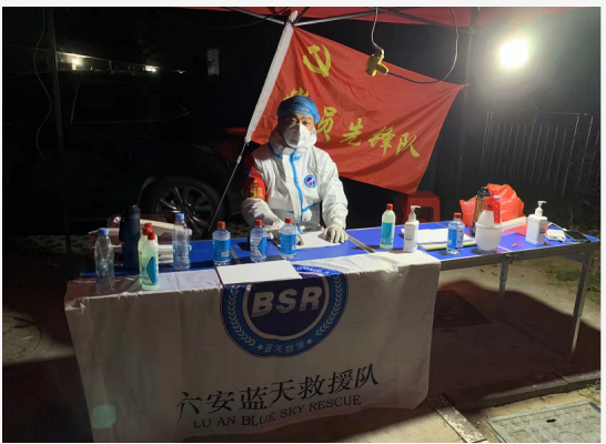 公共课教学部党支部党员陆航同志是六安市蓝天救援队的一员,六安突发疫情以来,他积极参与六安市疫情高危地区的消杀病毒、社区隔离阵地值守、一线核酸检测等工作。连日来,陆航同志舍小家团圆,护万家安全,持续奋战在疫情防控各条战线上,用忠诚和汗水诠释了一名共产党员的责任与担当。