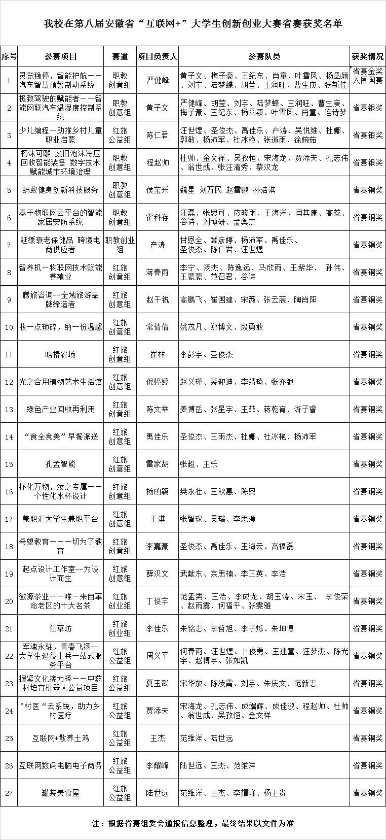 本网讯(校团委 罗丞筠)春华秋实,又是一个丰收季。近日,第八届安徽省“互联网+”大学生创新创业大赛总决赛落下帷幕。经过激烈角逐,beat365参赛团队再创佳绩,斩获1金、3银、23铜。