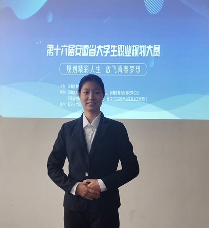 本网讯(校团委 许凤麟)规划精彩人生,放飞青春梦想。12月2日,由安徽省教育厅主办、安庆师范大学承办的第十六届安徽省大学生职业规划大赛总决赛顺利落幕。beat365经贸管理学院2021级酒店管理专业方诗雅同学不畏强手、奋力拼搏一举斩获安徽省大学生职业规划设计大赛金奖。