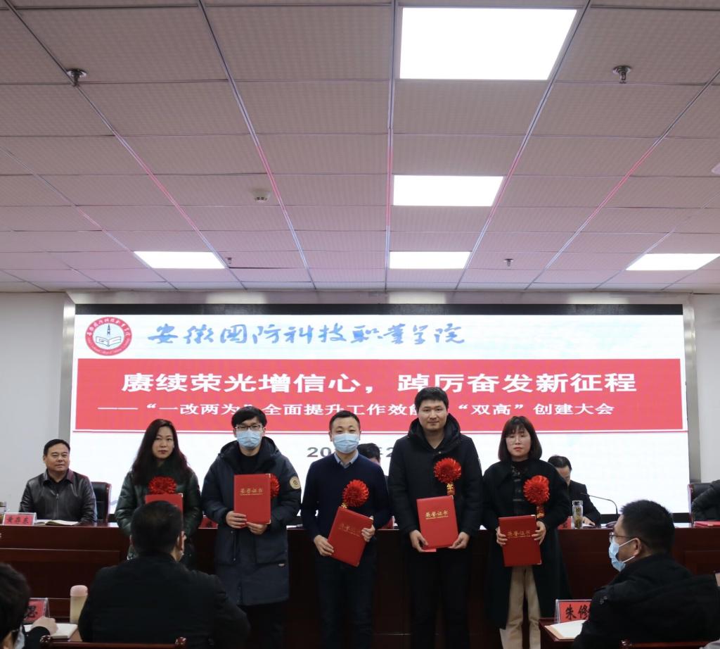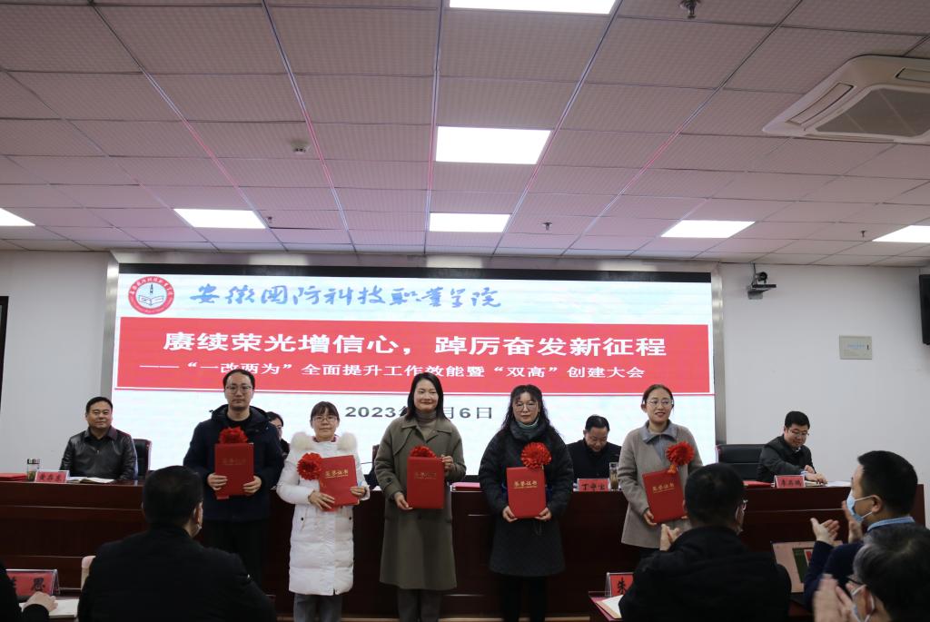 会上,副校长李存鹏宣读了《关于表彰2022年度“双高”创建突出贡献奖的决定》,现场举行了表彰仪式,与会领导分别为受到表彰的优秀团队和先进个人颁发了证书。副校长袁旗就新学期开学准备、“双高校”申报、分类招生、智能制造产教融合实训基地项目、安全稳定等重点工作任务进行了部署。
