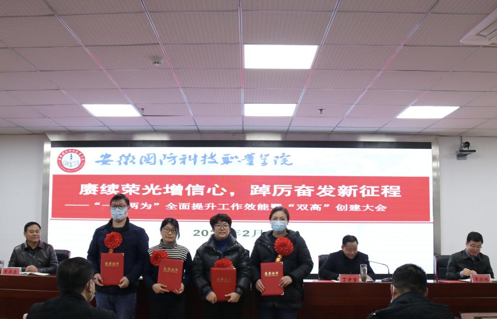 本网讯(党政办 陶常乐)为进一步振奋职工精神,提升工作效能,2月6日上午,学校在秉心楼12楼会议室召开“一改两为”全面提升工作效能暨“双高”创建大会,校党委书记余嗣元,党委委员、纪委书记丁守宝,党委委员、副校长袁旗,党委委员、副校长李存鹏,党委委员、工会主席黄存东出席会议,学校副科级以上干部、党组织书记以及在2022年“双高”创建突出贡献奖的教职工代表参加了会议,会议由纪委书记丁守宝主持,会议分阶段进行。