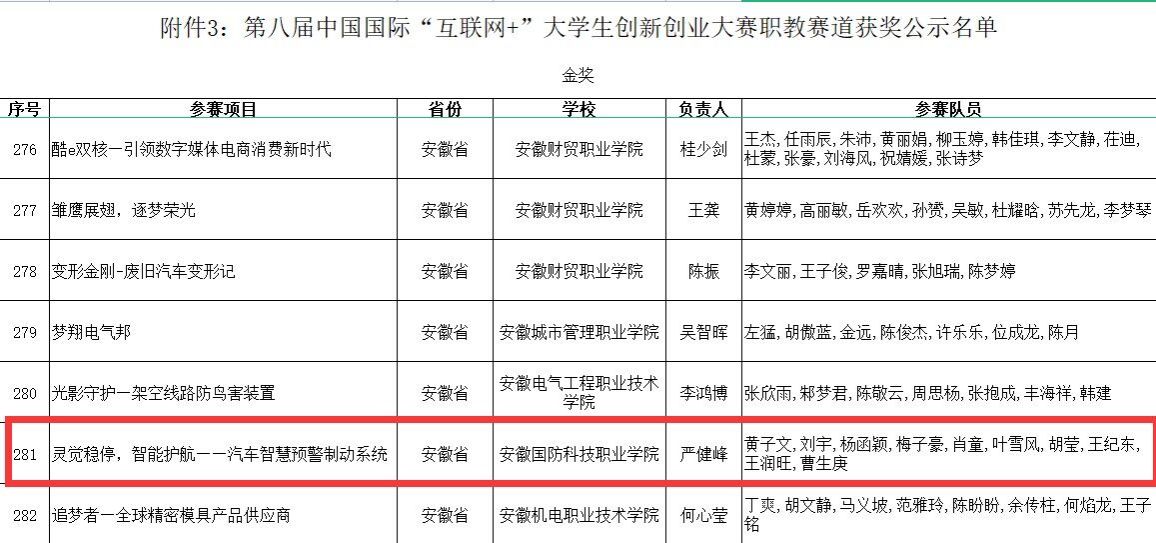 本网讯(团委 罗丞筠)近日,教育部高教司发文《关于公示第八届中国国际“互联网+”大学生创新创业大赛总决赛有关赛事获奖名单的通知》,beat365参赛项目《灵觉稳停,智能护航——汽车智慧预警制动系统》在第八届中国国际“互联网+”大学生创新创业大赛中斩获职教赛道铜奖。