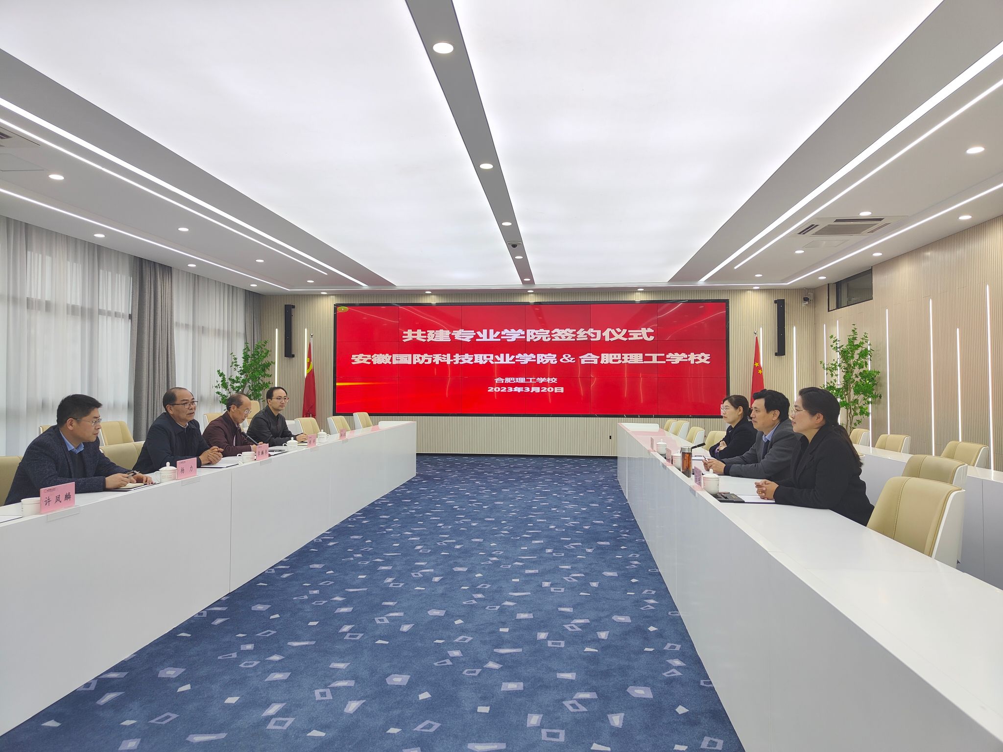 本网讯 为全面落实《教育部 安徽省人民政府关于整省推进职业教育一体化高质量发展加快技能安徽建设的意见》(皖政秘〔2021〕221 号),加快构建现代职业教育体系,促进优质资源共享,3月20日,校长李麟书携教务处、经贸管理学院、机械技术学院负责人一行5人,赴合肥理工学校签订高职专业学院联合培养协议。