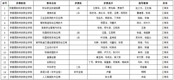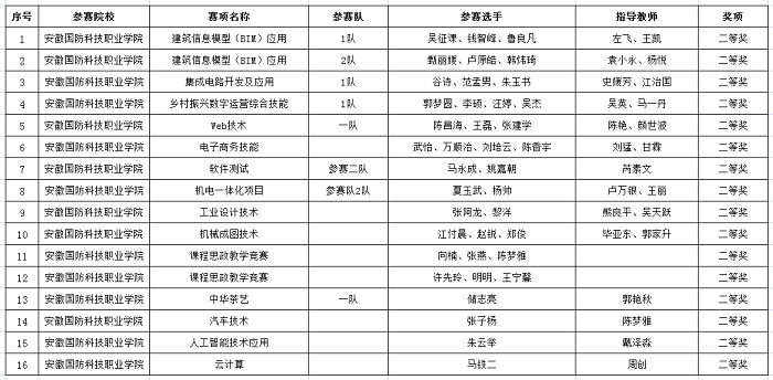 本网讯(教务处 刘严)为贯彻落实习近平总书记关于职业教育工作的重要指示和全国职业教育大会精神,坚持稳中求进工作总基调,扎实推动职业教育高质量发展,充分发挥大赛风向标作用,beat365师生积极组队参加了2022年安徽省职业院校技能大赛,共派出62个代表队参加了39个赛项,其中有40队获奖,一等奖9项、二等奖16项、三等奖15项。