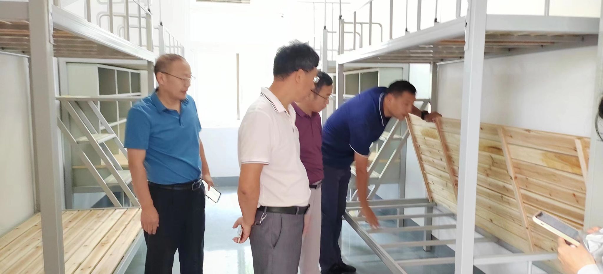 实地察看1号、3号学生公寓床铺