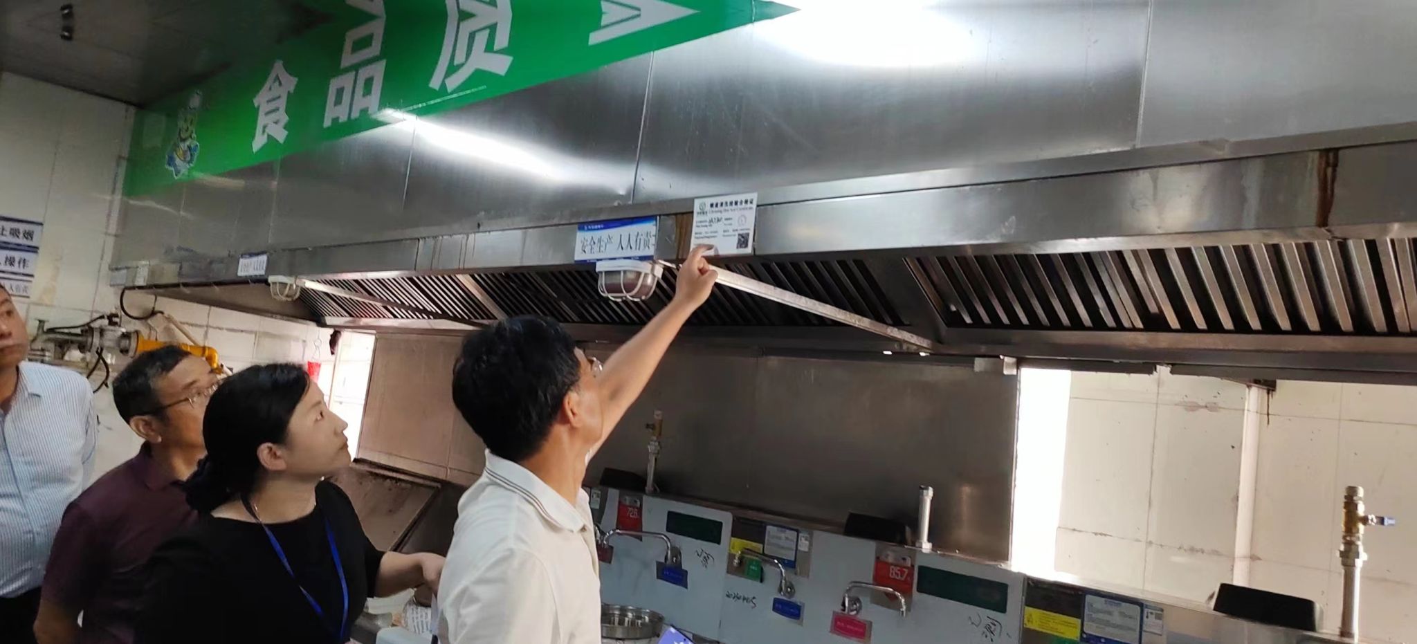 实地察看食堂(二楼)油烟管道清洁和安全自查情况