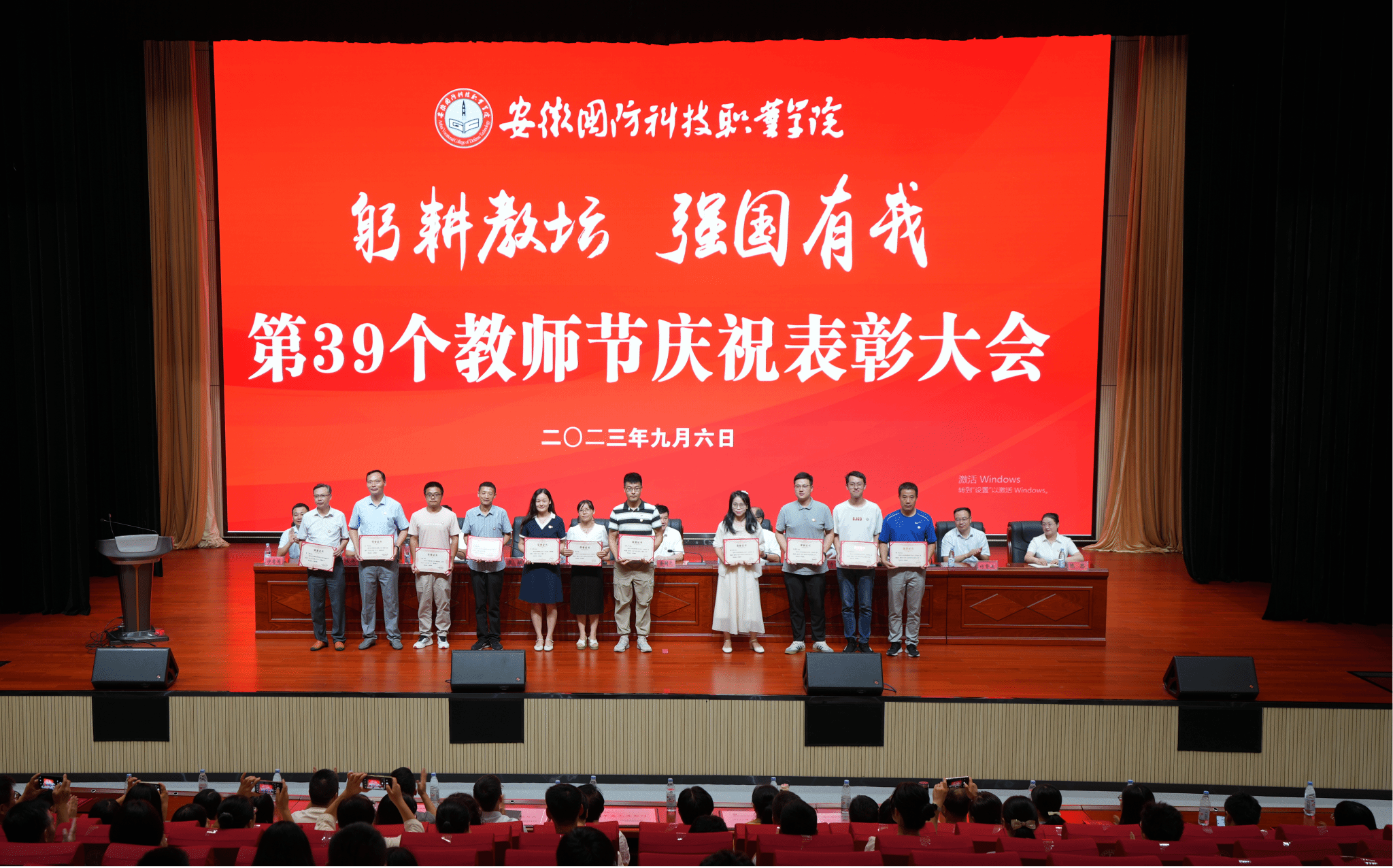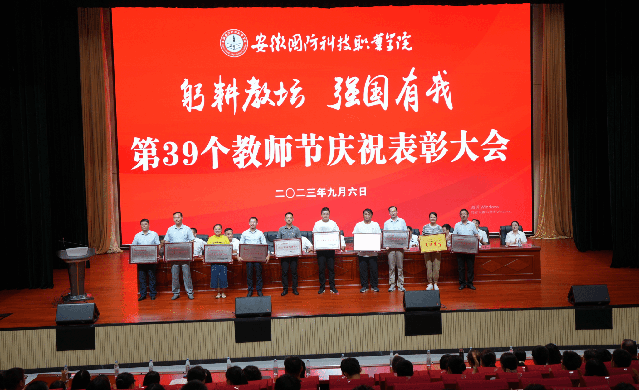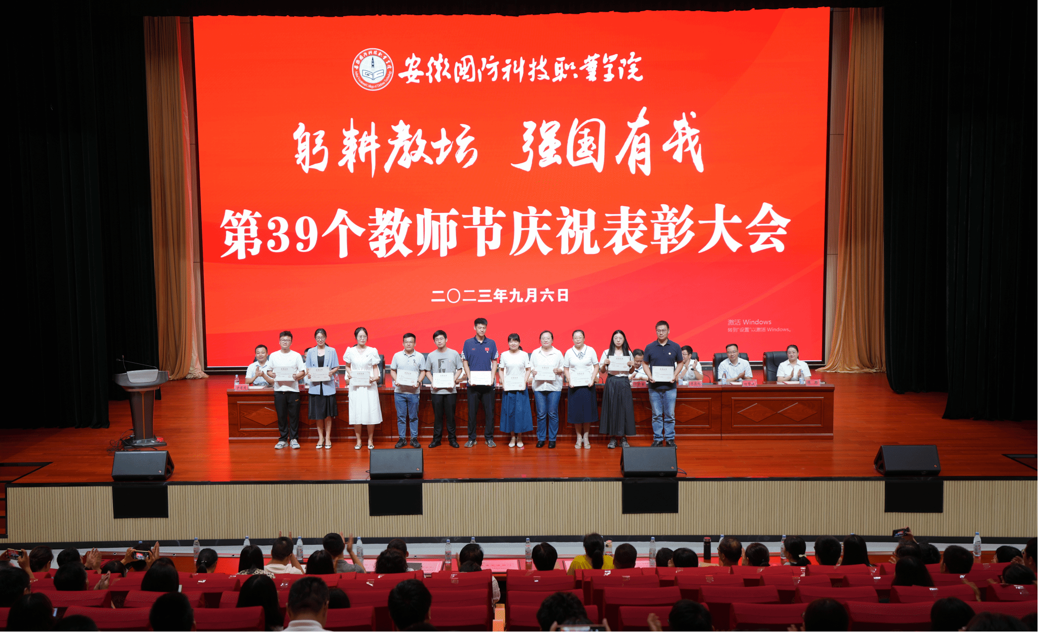 本网讯 又是一年佳节至,金秋硕果挂满枝。9月6日下午,beat365在产教融合中心多功能报告厅隆重召开庆祝第39个教师节表彰大会。校领导余嗣元、李麟书、冯伦久、丁守宝、袁旗、李存鹏,校党委委员黄存东、付贤政、朱修传、陈思、沙有闯出席会议。大会由副校长李存鹏主持,全体教职工参加了表彰大会。