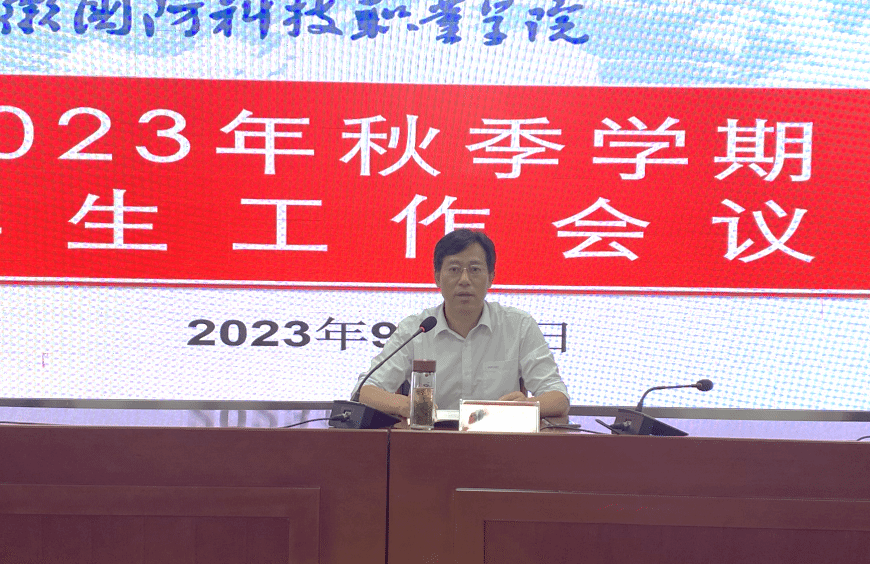 本网讯(学生处 孙洋洋)9月22日下午,学校在秉心楼12楼会议室组织召开2023年秋季学期学生工作会议。校党委委员、副校长袁旗出席会议并讲话。学生处、校团委全体成员,二级学院党总支书记、副书记、团总支书记,全体专兼职辅导员参加会议。会议由学生处副处长张志鸿主持。