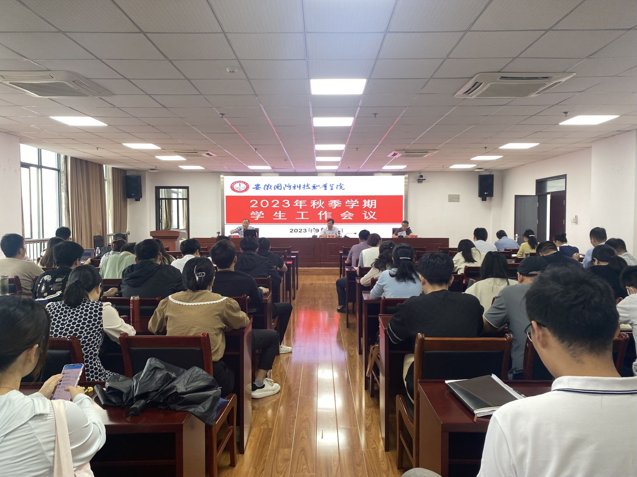 会上,学生处(安全保卫处)处长孙武总结了上半年学工重点工作完成情况,部署了本学期重点工作任务。张志鸿解读了《beat365唯一官方网站学生宿舍消防安全管理规定(试行)》制度,要求学工人员要提高思想认识,强化学生宿舍消防安全管理力度,聚力解决宿舍消防安全隐患,全面构建平安和谐校园。