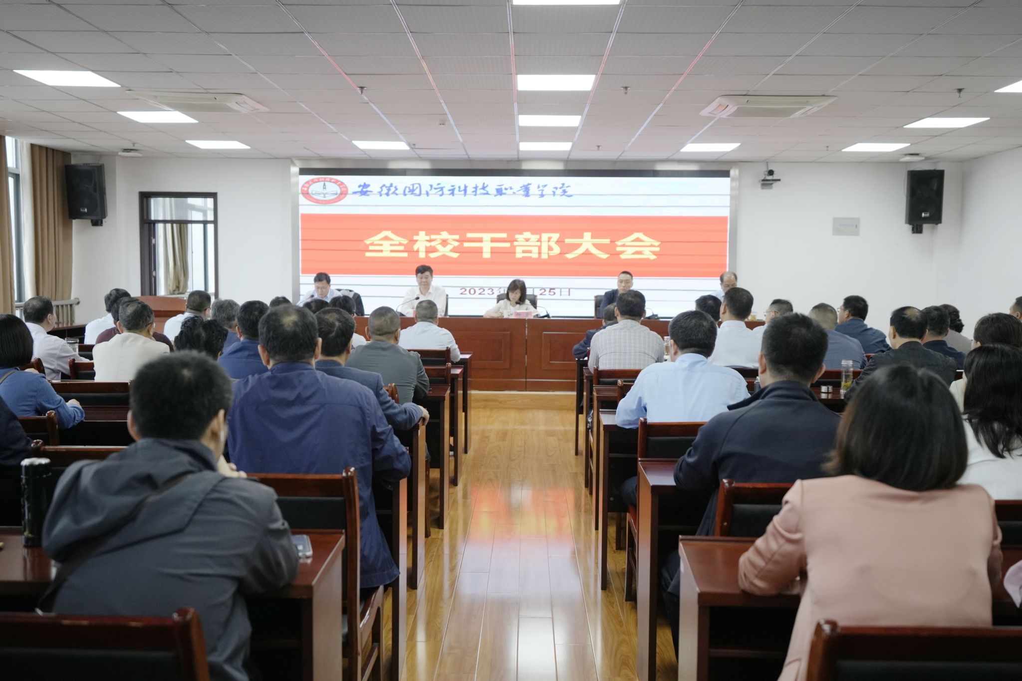 本网讯(党政办 马乃宇)9月25日,学院在秉心楼12楼会议室召开全校干部大会,宣布省委关于学院主要领导调整的决定。省发展和改革委党组成员、副主任钟岚出席会议并讲话,省委军民融合办副主任陈剑宣读省委决定,会议由学院党委书记余嗣元主持。