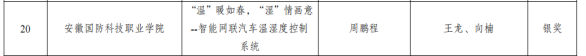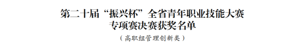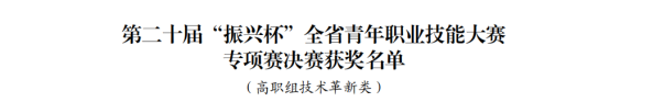 其中《指尖非遗--追“竹”人生,传承匠心技艺》获得高职组管理创新类金奖,《急中生“制”,预警伴行--汽车智慧预警制动系统》获得高职组创意设计类金奖;《田间卫生--农业环境智慧监控系统》获得高职组技术革新类银奖,《“温”暖如春,“湿”情画意--智能网联汽车温湿度控制系统》获得高职组创意设计类银奖。