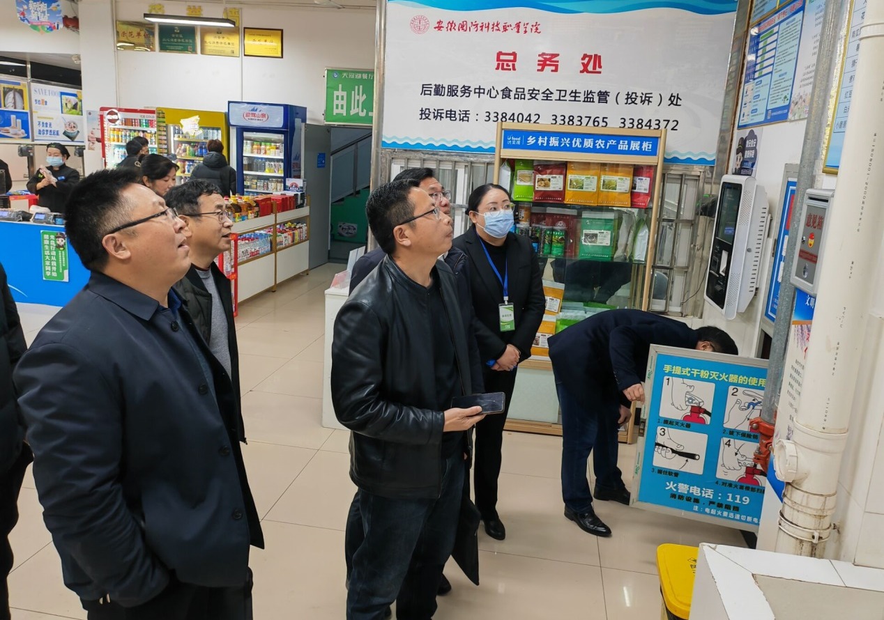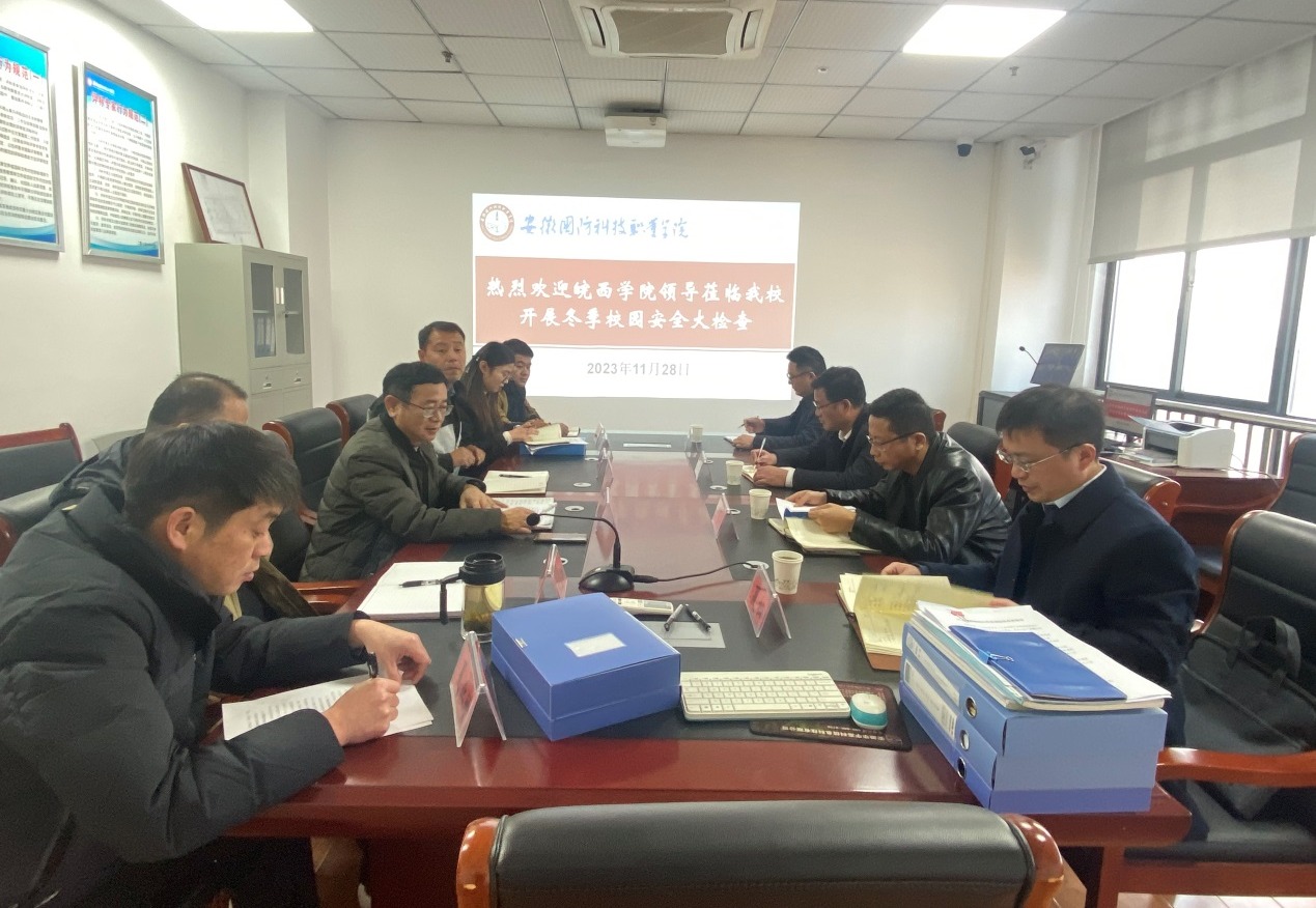 本网讯(学生处 孙洋洋)为深入学习贯彻习近平总书记关于安全生产的重要论述和对吕梁“11·16”重大火灾事故的重要指示精神,根据《六安市学校安全生产专项领导小组关于开展2023年全市学校冬季安全隐患大检查大整改的通知》要求,11月29日下午,皖西学院保卫处处长李光耀、后勤保障处处长何育华、实验实训教学管理部副主任夏松、保卫处消防科科长陈孝宇来校开展冬季安全大检查,beat365学生处(安全保卫处)处长孙武、总务处副处长张伟业(主持工作)、学生处副处长张志鸿、安全保卫处科长杨振亚、教务处科长叶金芝、总务处干事夏业增陪同检查。