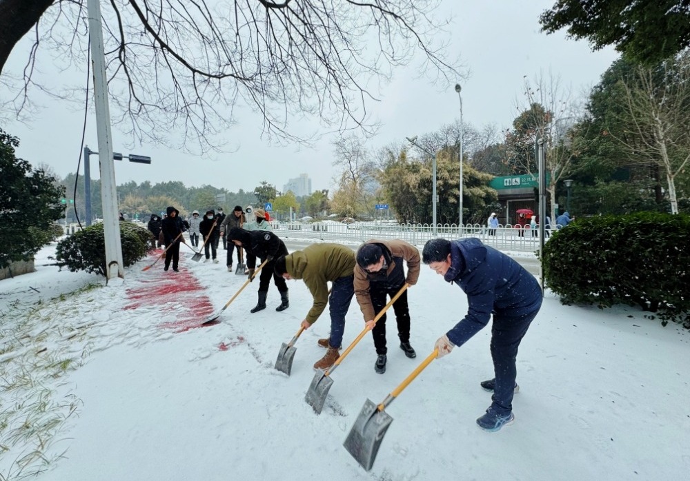 本网讯(组织人事处 樊新丽)“雪下面是冰,像我们这样,流水线合作干得快些”“你休息下吧,我来!”“没事,烘一烘就干了”。2月22日下午,学校党委“以雪为令、闻雪而动”,积极组织30余名教职工党员开展责任区清雪除冰志愿活动,保障雨雪天责任区道路顺畅及居民出行安全。