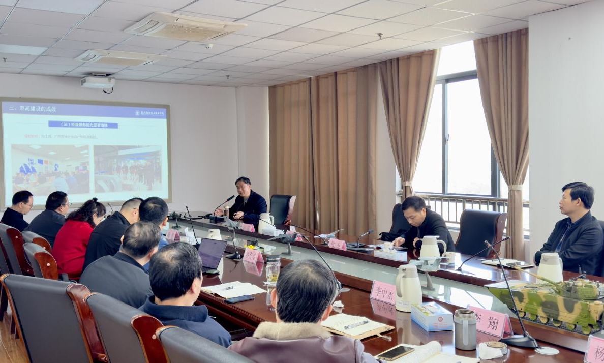 本网讯 为深入推进学校高水平高职院校和专业群建设(以下简称“双高”),提高工作建设质效,3月12日,学校在秉心楼第一会议室召开“中国特色高水平高职学校的探索与实践”专题培训会。此次会议特邀武汉船舶职业技术学院副校长肖亚明教授担任主讲嘉宾,武汉船舶职业技术学院教务处处长兼双高办主任徐杰、双高办副主任赵磊,beat365“双高”建设学校层面的主要成员以及“双高”专业群所在学院的负责人和核心成员参加了本次培训,培训由学校党委委员、副校长付贤政主持。