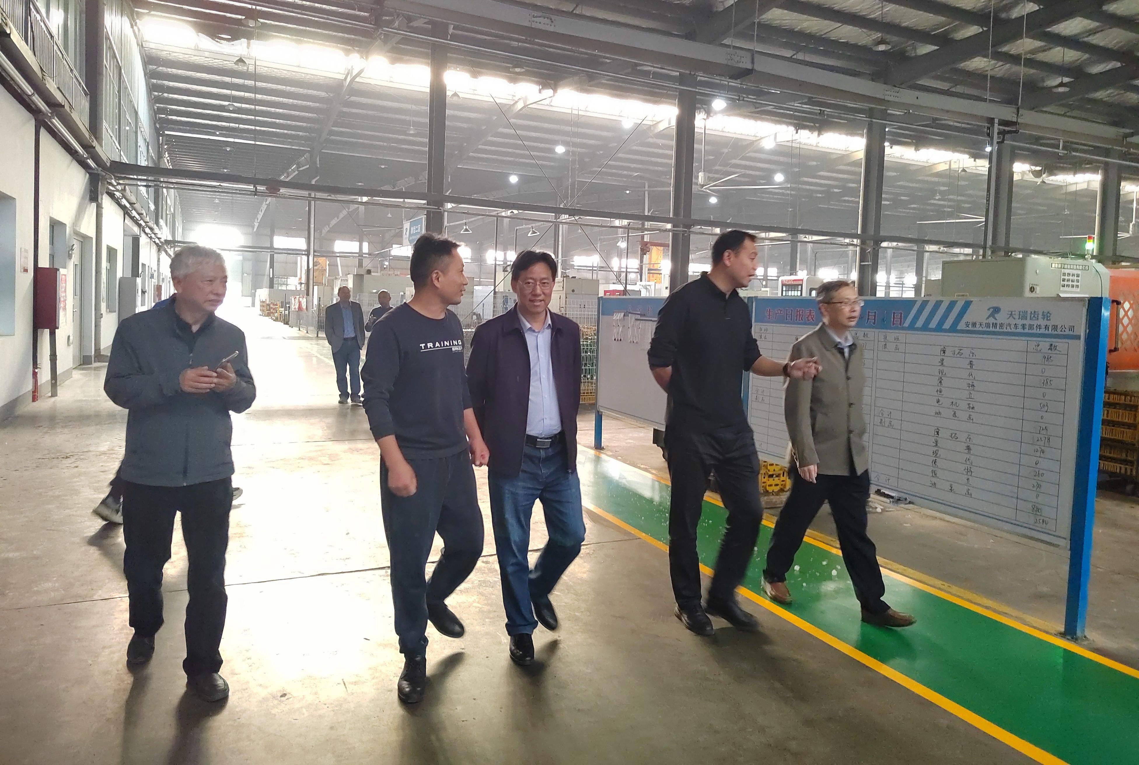 随后袁旗一行来到安徽中科源起科技有限公司、安徽天瑞精密汽车零部件有限公司走访调研,了解产品研发、技术创新、专利成果、产值效益等情况。