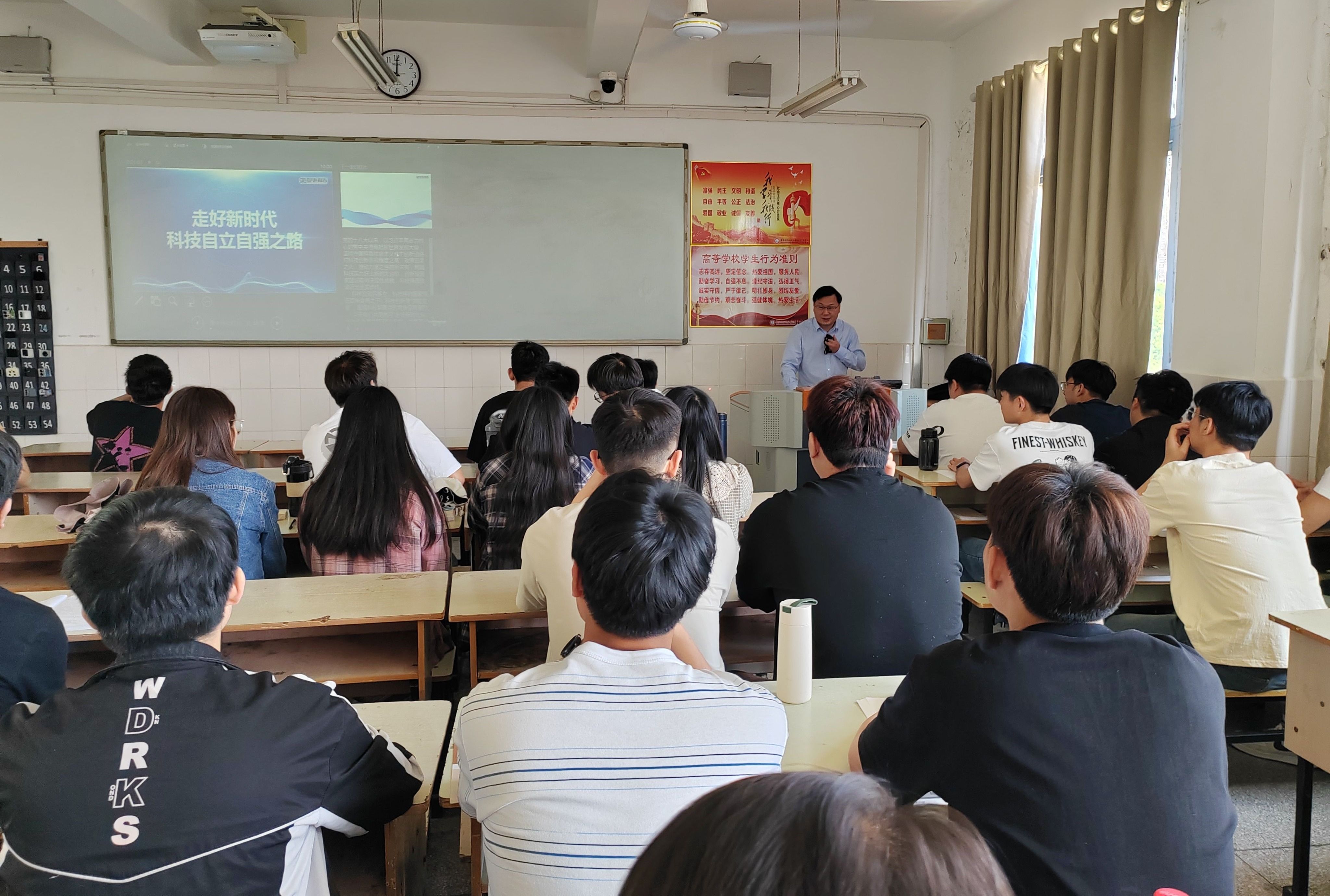 本网讯(马克思主义学院 王成名)为深入贯彻落实《中共安徽省委教育工作领导小组秘书组 中共安徽省委教育工委关于进一步推进领导干部上讲台开展思想政治教育工作的通知》(皖教工委函〔2023〕442号)文件要求,持续推进beat365马克思主义学院标准化建设,校长徐正红于5月8日上午在2教506教室为23本科机制1班学生讲授了《形势与政策教育》中“走好新时代科技自立自强之路”专题内容。