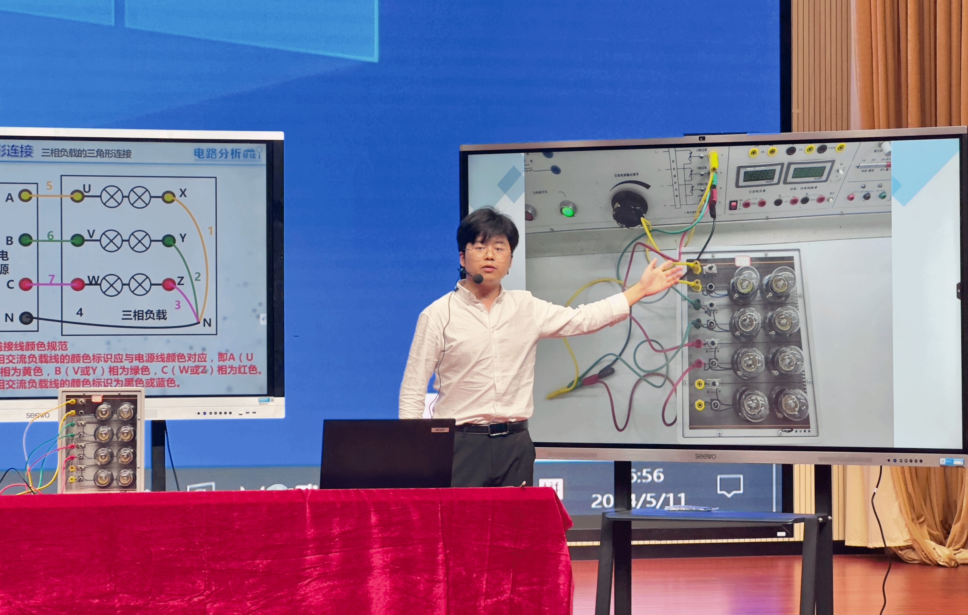 比赛现场,五位来自全国各地的知名专家担任评委,各团队以学生为中心,展示了扎实的理论教学、精湛的实践教学技巧以及灵活的信息技术应用能力。他们巧妙地将思政元素融入课堂教学,充分展现了课程教学改革的成果。整个比赛过程紧张有序、科学严谨,充分展现了学院教师团队高超的教学技能和积极向上的精神风貌。