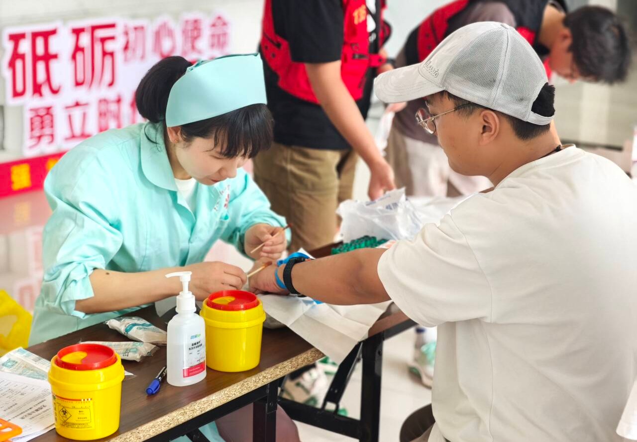 活动当天,青年志愿者们也早早来到现场,随着献血车驶入校园,活动正式开始。志愿者们围绕献血工作做好物资搬运、帐篷搭建、现场布置、后勤保障等,现场引导同学们填表、量血压、验血、化验、抽血,为同学们提供最专业规范、贴心周到的服务,确保整个献血活动安全、有序地进行。
