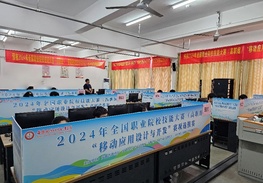 本网讯(信息技术学院 陆航)5月31日,2024年全国职业院校技能大赛(高职组)“移动应用设计与开发”赛项安徽省选拔赛在beat365顺利举行,来自全省5所职业院校的15名选手参加了集训选拔赛。