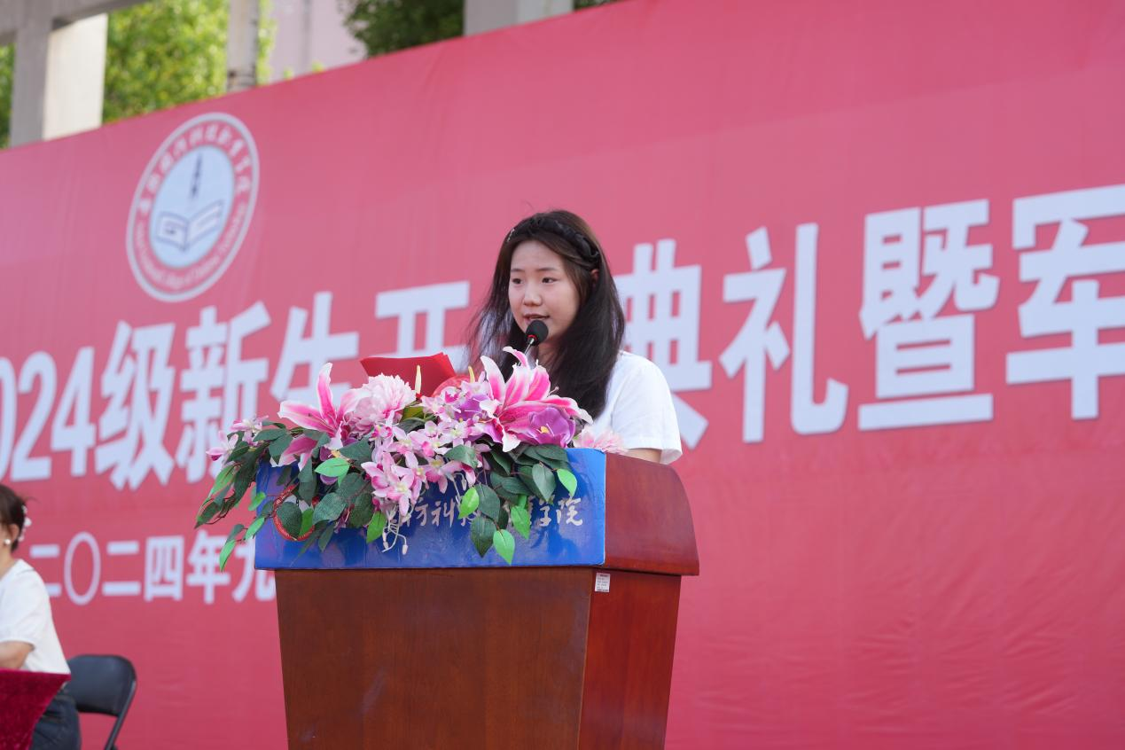 开学典礼上,学生代表23现代通信技术1班解文欣、2024级新生代表24计算机应用技术1班杨晨、教师代表张智依次发言。