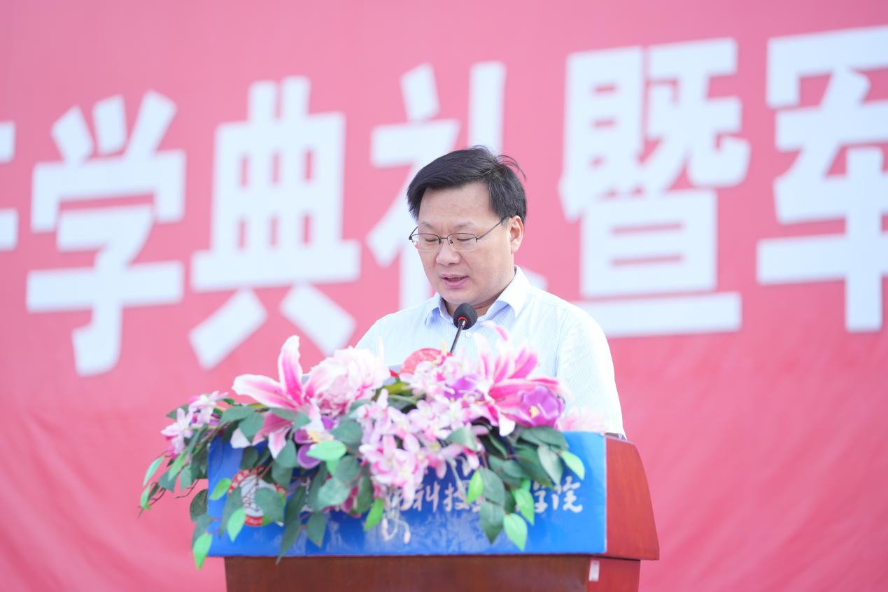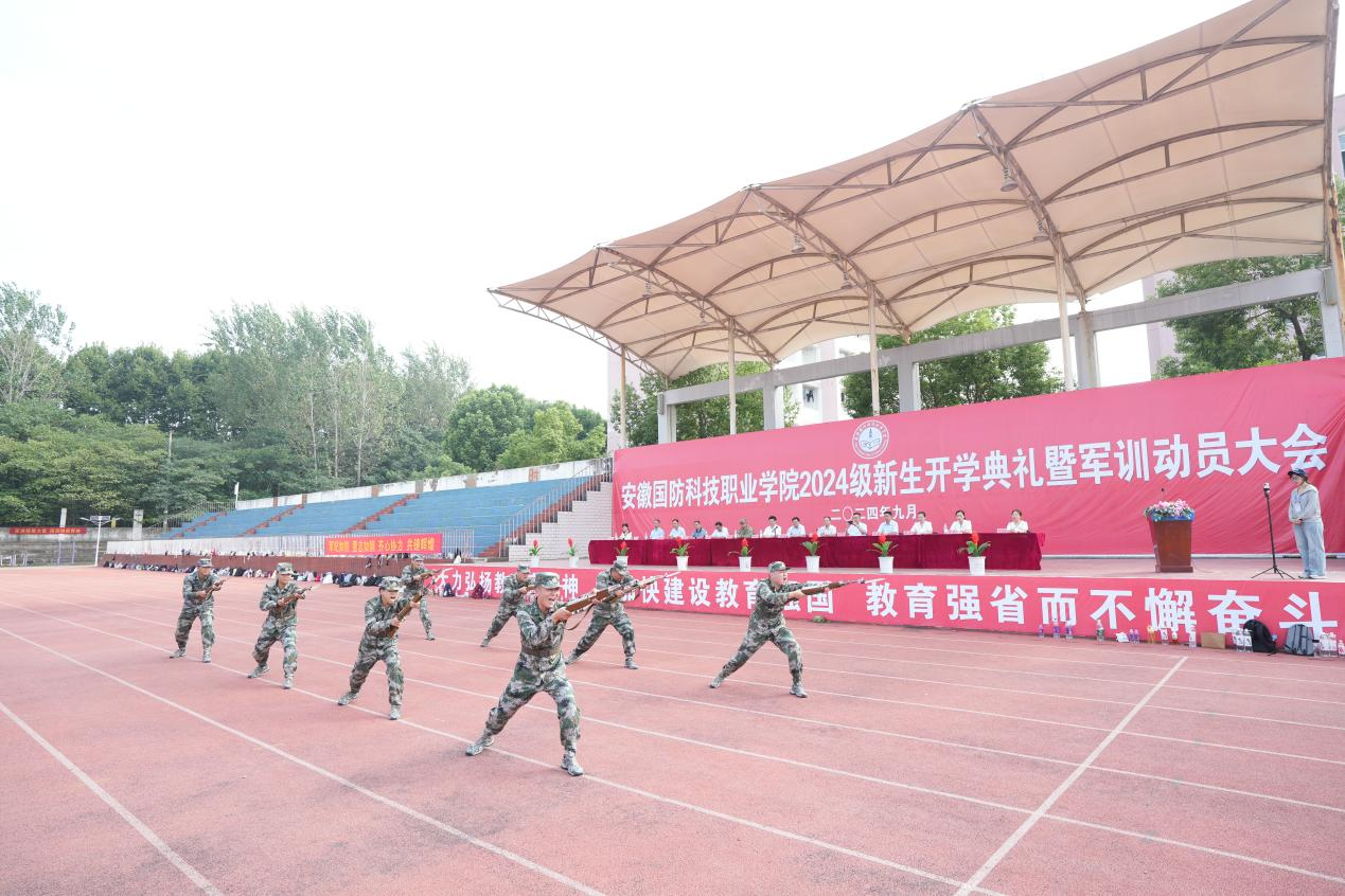 在开学典礼上,3700余名新生怀揣青春梦想,认真聆听校长徐正红为2024级新生们讲授的开学第一课。他指出,今年是学校建校50周年,在主管部门正确领导和社会各界的大力支持下,一代代国防人始终秉承“军魂育人、追求卓越”的办学精神和“厚德、强能、励志、笃行”的校训精神,学校实现了独立升格高职、荣膺全省人才培养工作评估“优秀院校”等五大历史性跨越,学校培养的5万余名技术技能人才为安徽省经济社会建设,为产业升级和稳定就业作出了积极贡献。他深情寄语全体新生,作为安徽国防的一份子,即将开启与学校砥砺前行的新征程,希望同学们坚定理想信念,肩负责任,带着殷殷重托,主动承担起这个伟大时代赋予当代青年的崇高使命,让自己成为实现中华民族伟大复兴的生力军而不懈奋斗;要练就过硬本领,坚持求真理、悟道理、明事理的态度,勤于学习,勇于实践,苦练本领,增长才干,成为服务社会、服务人民、服务国家的栋梁之才;要树立远大目标,明确人生方向,要立大志、明目标、争奋斗,要有“踏平坎坷成大道,斗罢艰险又出发”的毅力和决心,用自己的青春和活力为学校的发展注入新动力。