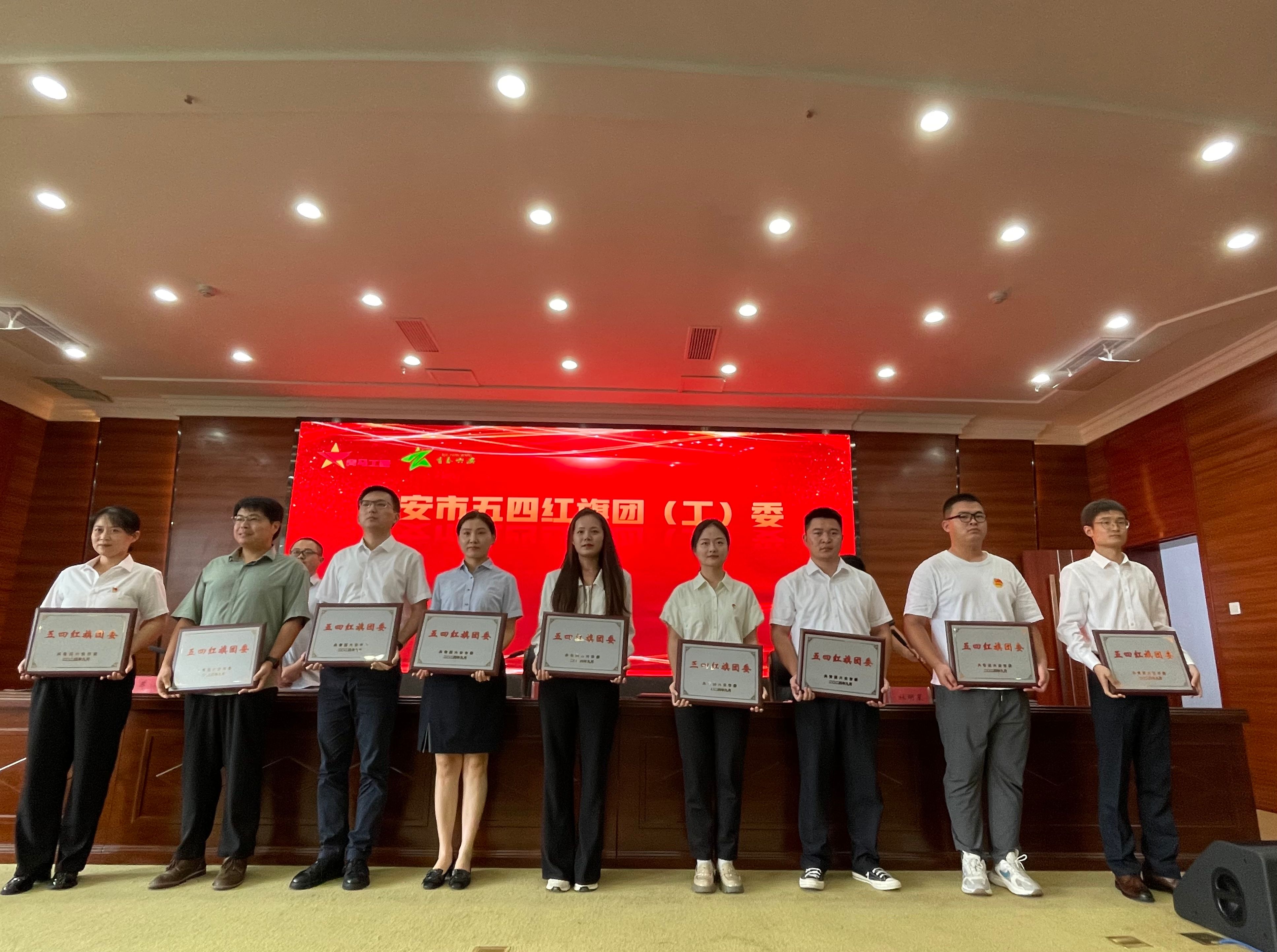 学校团委获“六安市五四红旗团委”荣誉称号;汽车技术学院团总支获“六安市五四红旗团总支部”荣誉称号;电气技术学院团总支书记陈俊获“六安市共青团干部”荣誉称号;电气技术学院张宏宇同学、信息技术学院陈鑫哲同学获“六安市优秀共青团员”荣誉称号。